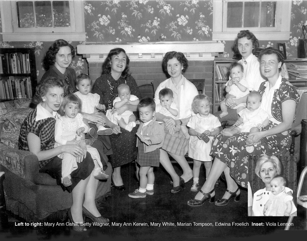 These seven Founders of LLL were Mary Ann Cahill, Edwina Froehlich, Mary Ann Kerwin, Viola Lennon, Marian Tompson, Betty Wagner, and Mary White.